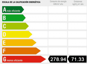 - Calificación Energética Consumo de Energía kW h / m² año: Clase "G"