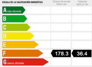 - Calificación Energética Consumo de Energía kW h / m² año: Clase "F"